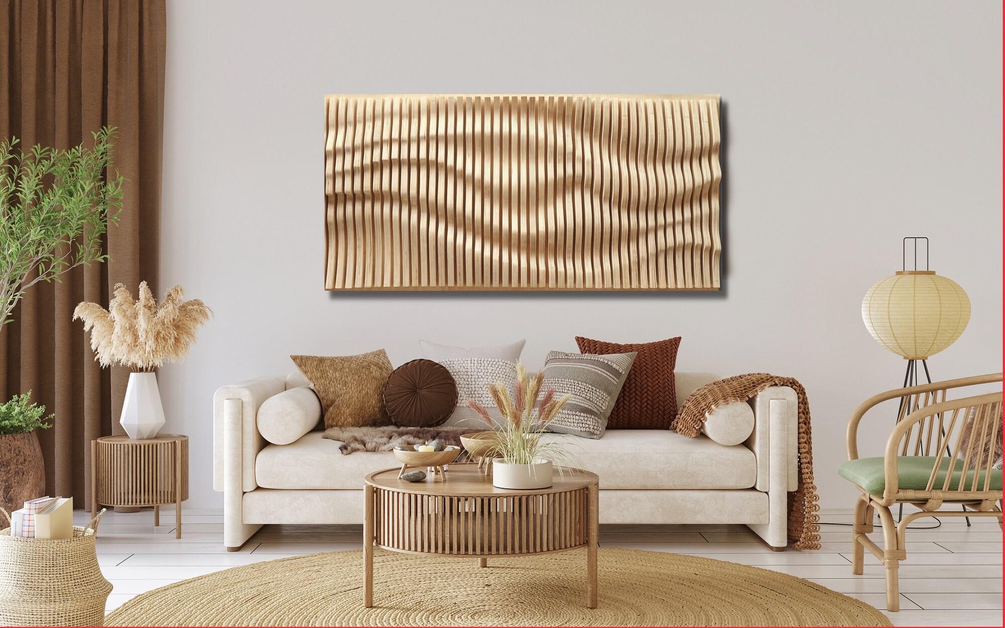 This paramatric wall art is made of natural wooden slats. This is a one in a kind wooden wavy art decor, a stunning addition to your living space. The wall decoration shown in the photo is made of high-quality MDF. Although for those who love natural wood with its drawing I offer additonal option which is a solid wood.