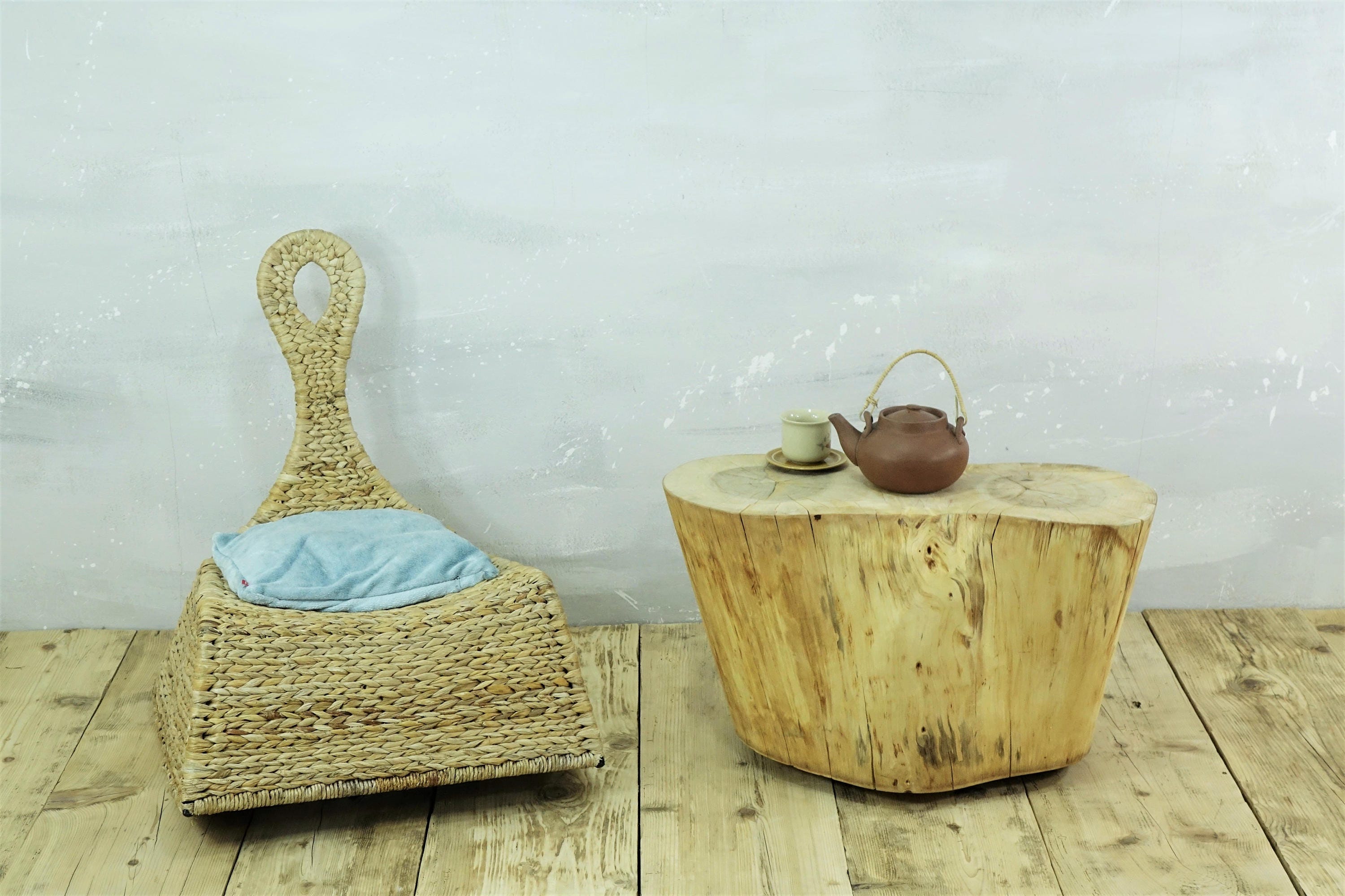 The trunk table covered with organic oil remains a fully natural piece of wood.